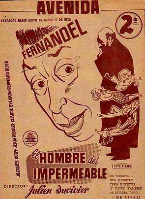シャトレ劇場のクラリネット吹きアルベール(フェルナンデル)は、叔父が危篤で田舎へ行った妻の留守中、同僚に教えられた劇場のコーラス・ガール、 エバのアパートへ一夜の浮気にレインコート姿で出かけた。ところがエバは着替えに寝室へ入ったまま出てこない。そして停電。不審に思ったアルベールが寝室 へ入るとエバは何者かに殺されていた。慌てたアルベールは警察に知れれば自分の浮気が妻にばれ十五年の結婚生活もおさらばと考え、そのままアパートを出 た。が彼はここへ入る時この家の住人ラファエル(ベルナール・ブリエ)と顔を合せ、出る時には夜の女エステルと出会って二人の目撃者を作っていた。ラファ エルはエバの許へ通う紳士たちの弱味を握ってゆすり歩くのを商売にしていた。翌日の新聞は案の定、“レインコートの男"アルベールを犯人としていたばかり か翌朝にはラファエルが口止料をゆすりに来た。が、驚いたことに彼は、同夜真犯人を見たという。警察が睨むアルベールをゆすり更に真犯人をゆすろうという 寸法だ。ふりかかった災難にアルベールは六時に再会を約して別れた。その足でラファエルは真犯人だという青年モーリスを画商オブライエンの邸に訪ねた。オ ブライエンは陰で金塊密輸をしている男で親子ほど年の少いフロランス(クロード・シルヴァン)を囲っていた。が彼女はピアノ教師のアプレ青年モーリスと関 係、モーリスはまたエバとも関係していたため二人の女の恋の鞘当てとなりフロランスは、あの夜寝室に隠れてエバを殺した。しかしラファエルはフロランスを 見ずに、直ぐ後に訪ねてきたモーリスを見たというのが事の真相。勿論これを誰一人知る筈がない。モーリスもラファエルのゆすりにその夜の再会を約した。一 方アルベールは六時にラファエルと会い、真犯人を教えろと拳銃を突きつけたが逆に脅され、連れ立ってラフファルがモーリスと会うセーヌの河岸に行った。や がてモーリスが現れた。と彼は後をつけてきたオブライエンの手下サムとボブに襲われた。フロランスを寝取られたと知ったオブライエンの仕業である。モーリ スはボブを射殺、抵抗したが待機していたオブライエンの車に連れ去られた。ラファエルからモーリスが真犯人だと聞かされたアルベールはがっかりした。が翌 日オブライエンの車を見つけ後をつけてセーヌの河岸につながれたヨットに忍び入んだ彼は、オブライエンがモーリスを殺そうとしているのを知り真犯人に死な れては大変と彼を連出し警官に突出したがモーリスは警官を射殺して逃げた。モーリスはオブライエンの邸に行き逆に彼を脅迫したが、そこへ現れたのがラファ エル。彼は容疑者のアルベールに罪を着せれば万事落着、お互いの得と提案、その夜七時にアルベールがアパートへ来ると告げた。アルベール殺しはモーリスの 役と決った。が後刻、オブライエンはモーリスにアルベールとラファエル二人を殺させ、更に腹心のサムにそのモーリスを殺せと命じた。その夜、計画通りラ ファエルはモーリスに射殺されたがアルベールは幸運にも一寸した時間の関係で助かった。そしてモーリスはサムに、サムはまた運よく現れた警官にそれぞれ殺 され、様子如何と現れたオブライエンとフロランスも逮捕された。事件は解決、アルベールは晴々と妻を迎えた。