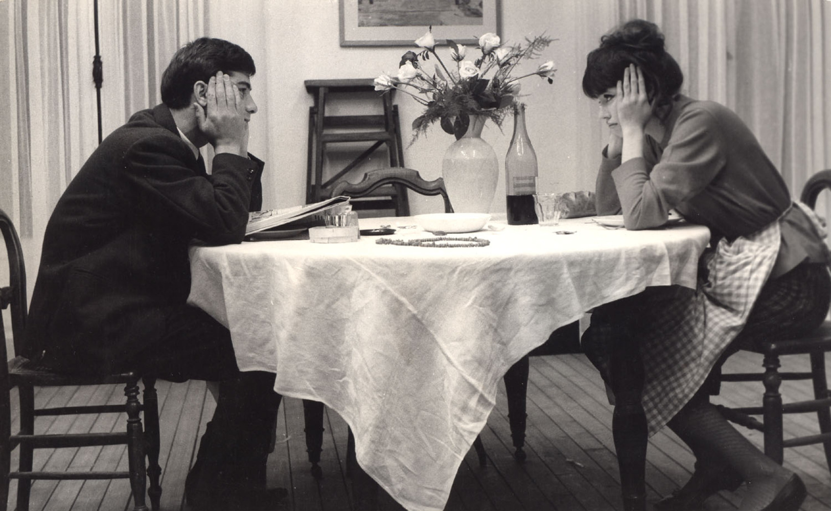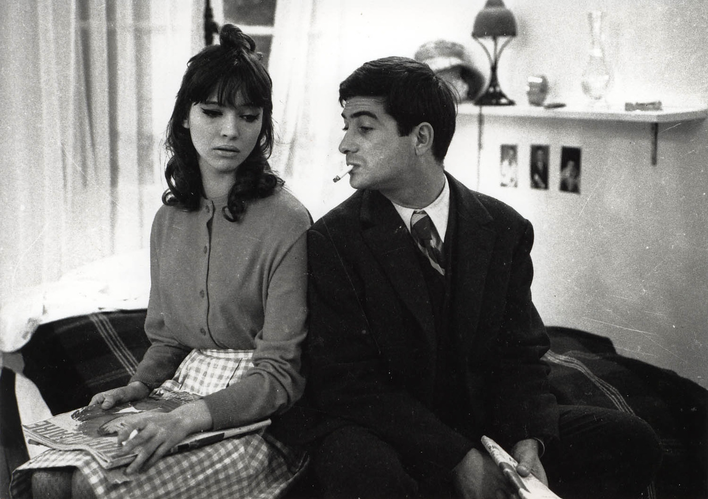 パ リの下町の小さな本屋の店に働くエミール(ジャン・クロード・ブリアリ)はストリップ・ガールのアンジェラ(アンナ・カリーナ)と同棲している。そのアン ジェラが、どうしたはずみか急に赤ん坊が欲しいと言い出す。そのことで、二人はどうも意見が合わず、喧嘩がたえない。男のエミールにしてみれば、子供はい らないし、正式な結婚なんかしない方が都合がいいからだ。どうしても子供を生むと意地になったアンジェラは他の男に頼んでつくってもらうと、おだやかなら ぬ宣告をする。本当のところアンジェラを愛しているエミールはこの言葉に動揺するが、いまさらあとへは引けない。勝手にしろ、というしかないのだ。彼女は ついに、同じアパートの下の部屋に住むパーキング・メーター係りのアルフレッド(ジャン・ポール・ベルモンド)に頼むと言い出す。アルフレッドはかねてか らアンジェラに色目をつかっていたのだ。そして、ある日、アンジェラはとうとう心を決めてアルフレッドと寝てしまったのである。夜おそくエミールの許に 帰って来たアンジェラ。二人は黙々として枕をならべる。やがてエミールが口を切る。「ほんとにあいつの子供ができたかどうか分らないよ。だからためしにぼ くの子供をつくってみようよ」エミールはアンジェラを抱く。愛している女に子供を生ませるのは当然なんだと思いながら。