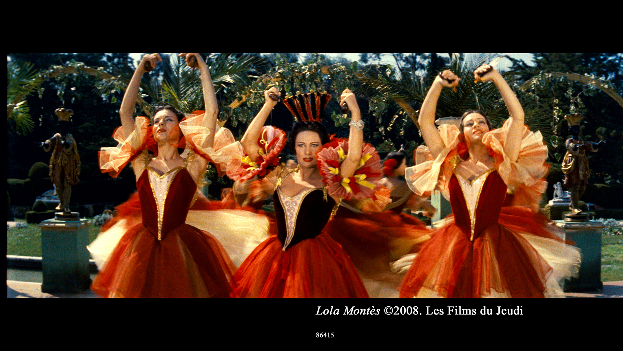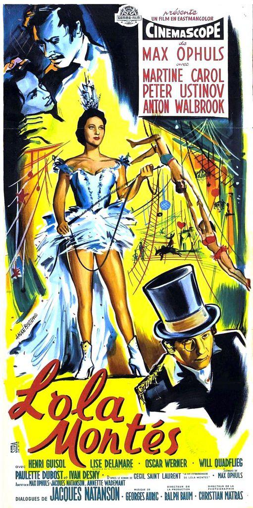 十九世紀のパリ--ロラ・モンテス(マルティーヌ・キャロル)は、美しい少女だった。母親の恋人ジェームズ(イヴァン・デニ)はロラへの恋情に耐え がたく、ある日、ロラを誘って駈け落ちした。母と離れ、愛情もない男の情婦となったロラの生活は長く続かず彼女は逃れて文なしのまま、自由の世界へと飛び 出した。こうしてロラの男から男への遍歴が始まった。彼女は不幸を招く女と言われて、華やかな醜聞の旋風を捲き起しつつ、全欧を歩き廻った。リスト(ウィ ル・キャドフリーグ)もロラを愛した一人だった。彼は彼女の為にいくつかの歌を作曲したが、やがてロラから去って行った。ロラはロシアに行き湯水の様に金 を使ったので、ドイツに現われた時は無一文に近かった。そこで、ロラはババリア王ルイ一世(アントン・ウォルブルック)に近づき、誘惑しようと決心した。 ロラの計画は見事成功し王はロラの魅力の虜になった。ロラは心の美しい王を心から愛し、貞淑な妻のように仕えたが、反対者たちは彼女の追放を叫び、革命ま で勃発した。ロラは彼女に想いを寄せる学生(オスカー・ヴェルナー)に助けられ、宮殿から脱出した。彼は二人で新らしい人生へ出直そうとロラを説き、ロラ もこの学生となら静かな汚れない人生を送れると思ったが、青年の将来を考えて諦らめた。ロラは旅のサーカスに身を投じた。ブランコの芸を演じるロラの姿 を、かつて世界中に醜聞をまいた女として、ニュー・オルリンズの男たちは見守った。調馬師(ピーター・ユスティノフ)の口上がひびく。ロラにはもう欲望も 野心もなかった。ブランコ台のロラは、うつろな声で“ありがとう"とつぶやいていたが、その口もとには微笑さえ浮んでいた。