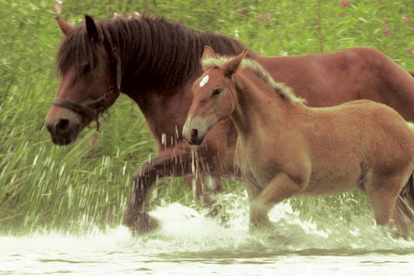 アルデンヌの森で、雌馬ミラベルはきこりの仕事を補助する最高の馬だった。ボスの息子、パトリックの過失で事故が起きてしまう。ミラベルは売られ、子馬ポムと離ればなれにされてしまう。母親を奪われ、この子馬は衰弱して行く。