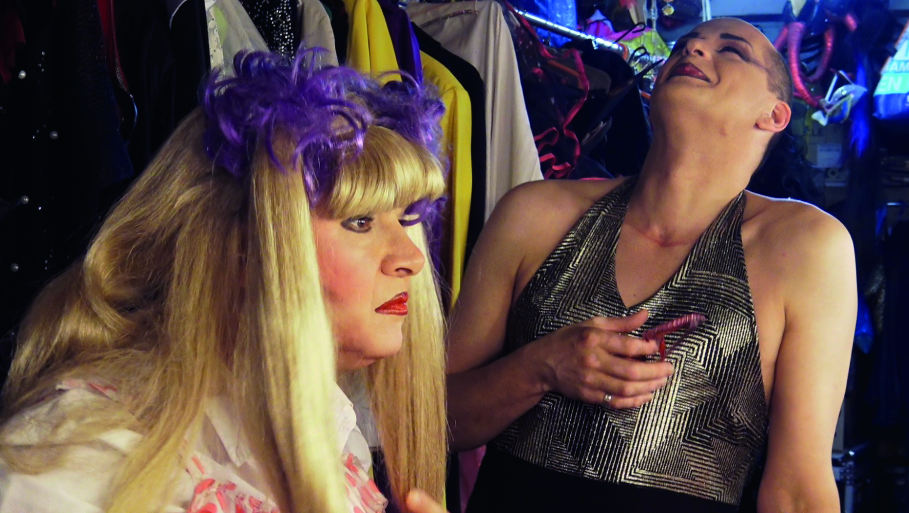 Drag artists live in the expectation of this magical moment when they become women and singing icons on the stage. Yesterday they were doctors, fashion designers, booksellers, farmers, state orphans, today they are actors, make-up artists, dancers, singers, directors... they form a microcosm of "sisters," united although disparate. For all of them, cross-dressing was a revelation and they have left everything behind to live their passion. They are young, old, beautiful, fat. Some provoke desire, others laughter. Some mimic stars, others perform burlesque acts. Some are feminine, indeed transgender or transsexual, others become men again once the show is over. Often alone, they are stars of a gay milieux which they attract as much as they repel. Beyond the sequins and the stage lights, these artists tell us their stories and hopes, revealing with a great humanity the gap between the public characters they play and their private lives.