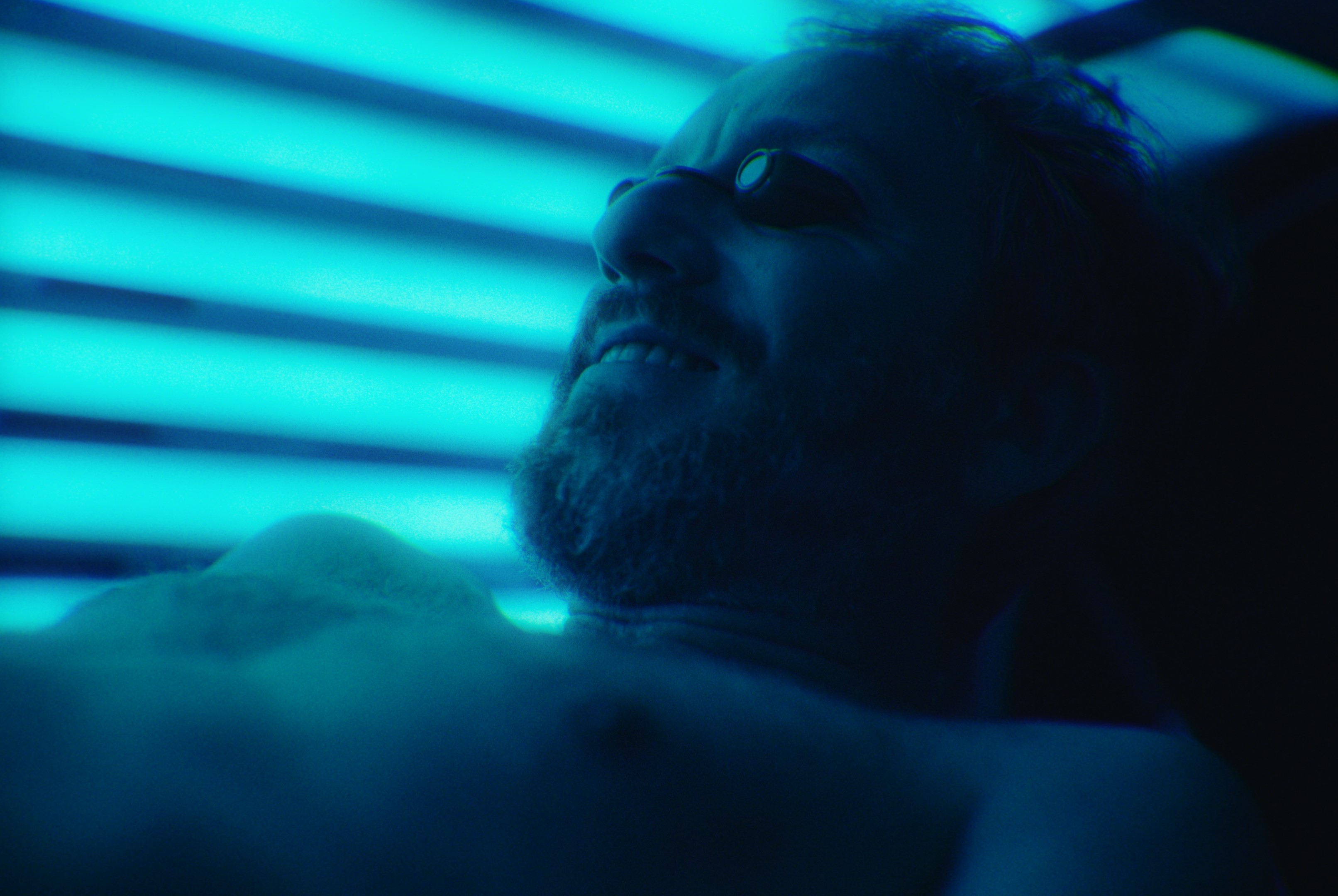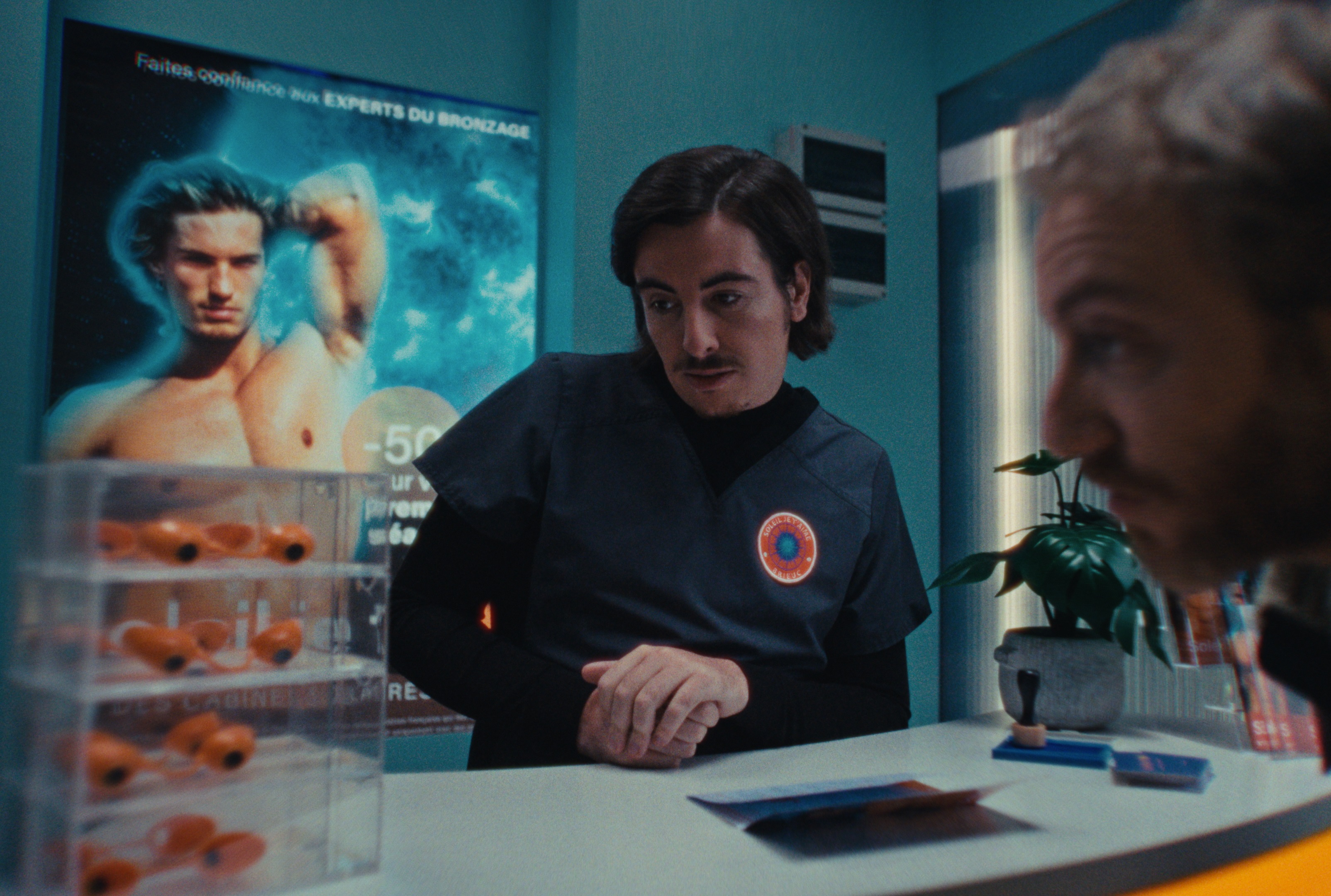 Vadim is an underground car park attendant, desperately in need of sun and company. He goes to the tanning salon where the blue light of the UV tints the blues with a sunny poetry. There he meets Léonore, his cabin neighbour, whose presence warms his heart. But the walls of the salon separate them: although he only knows her voice, Vadim would like to meet her in person.
