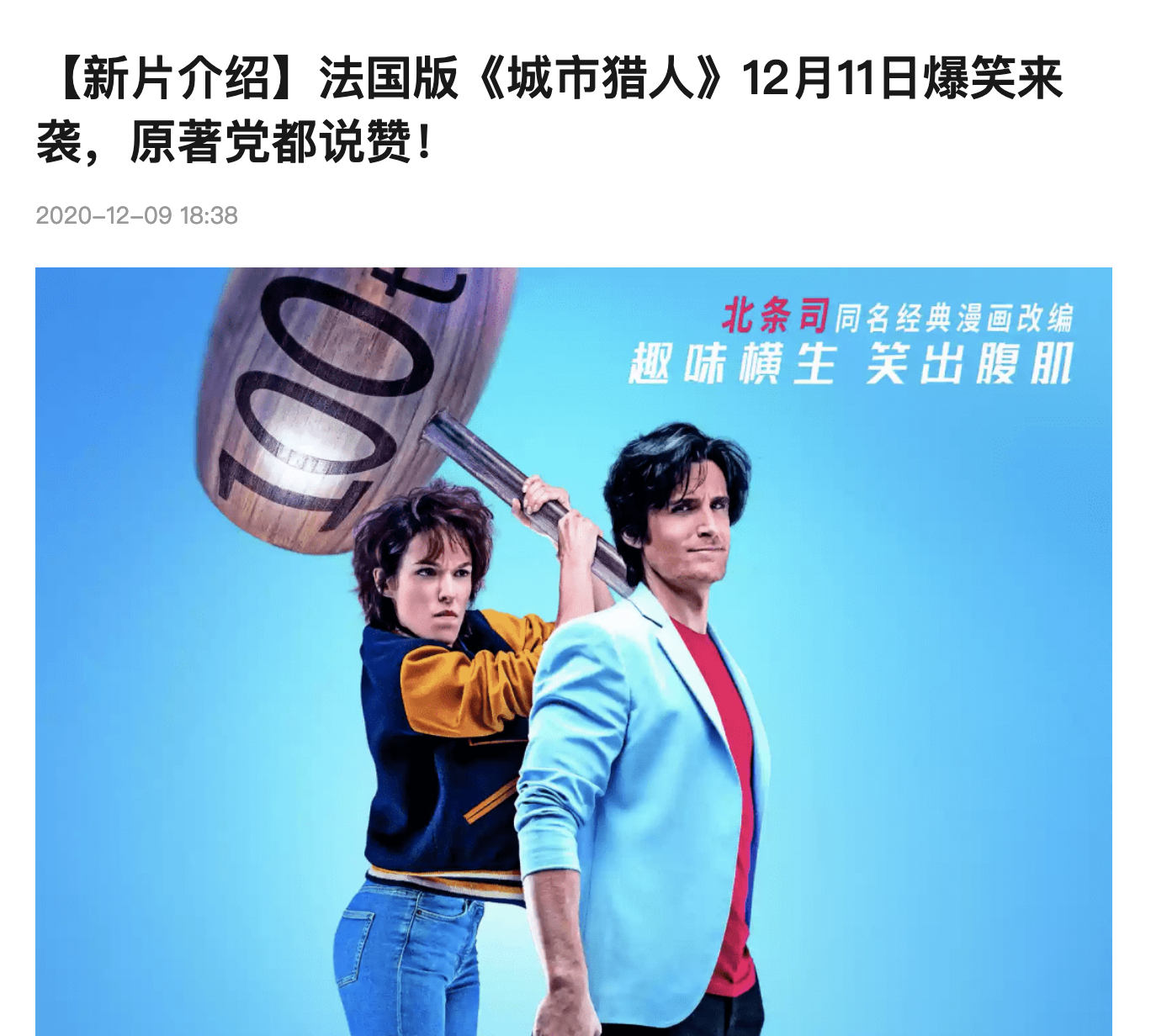 En 中国, la presse a réservé un bon accueil à City Hunter, sorti le 11 décembre. Sohu.com garantit "plein d’humour et l’approbation complète des fans des mangas".